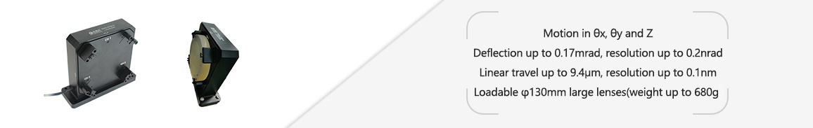 The S23A is a large-load piezo Z/tip/tilt platform for θx, θy deflection and Z-axis linear motion, capable of carrying a large φ130mm lens (weight up to 680g) to achieve high-precision motion. Its deflection range can reach 0.17mrad and the linear travel can reach 9.4μm. It is internally connected in parallel by three sets of piezo actuators, and can realize θx, θy deflection and Z-axis linear motion using the corresponding CoreMorrow three-channel piezo controller.
