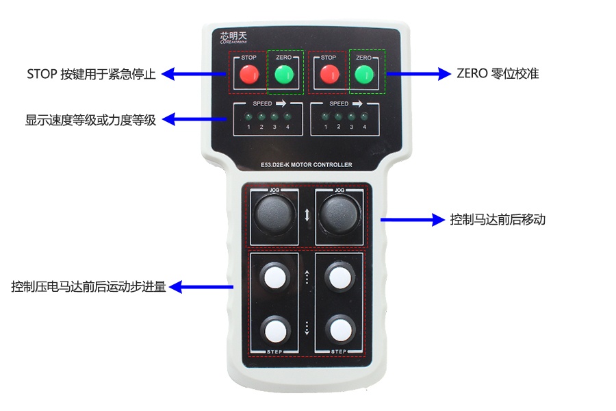 E53.D2E-K手持式压电马达控制器是一款伺服控制器,支持上位机软件控制,也可通过手柄进行控制。其可通过USB接口或RS-232/422串口实现与上位机实时通信,软件支持二次开发。具有2个输出通道,可同时驱动2台直线压电马达位移台。